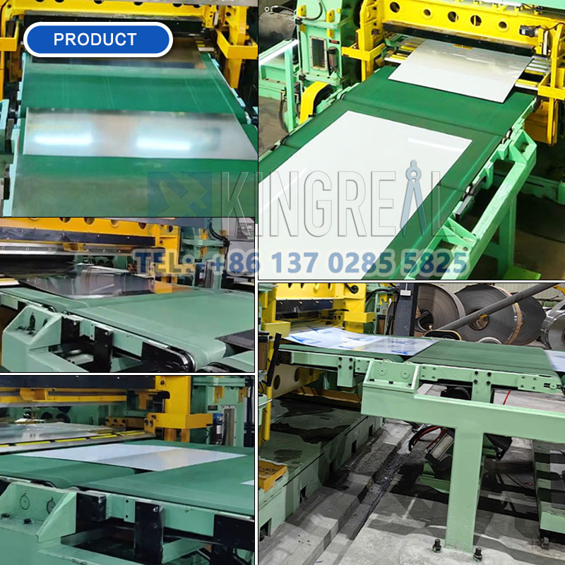 Plně automatická řezačka KINGREAL STEEL SLITTER je navržena pro řezání svitku různého materiálu na požadovaný plech a stohování profilu, který se skládá hlavně z odvíječe, upínacího vyrovnávače, řezačky, zakladače atd., a je vybaven pomocnými zařízeními, jako je podavač, boční vodicí zařízení, přechodové zařízení, dopravník atd.